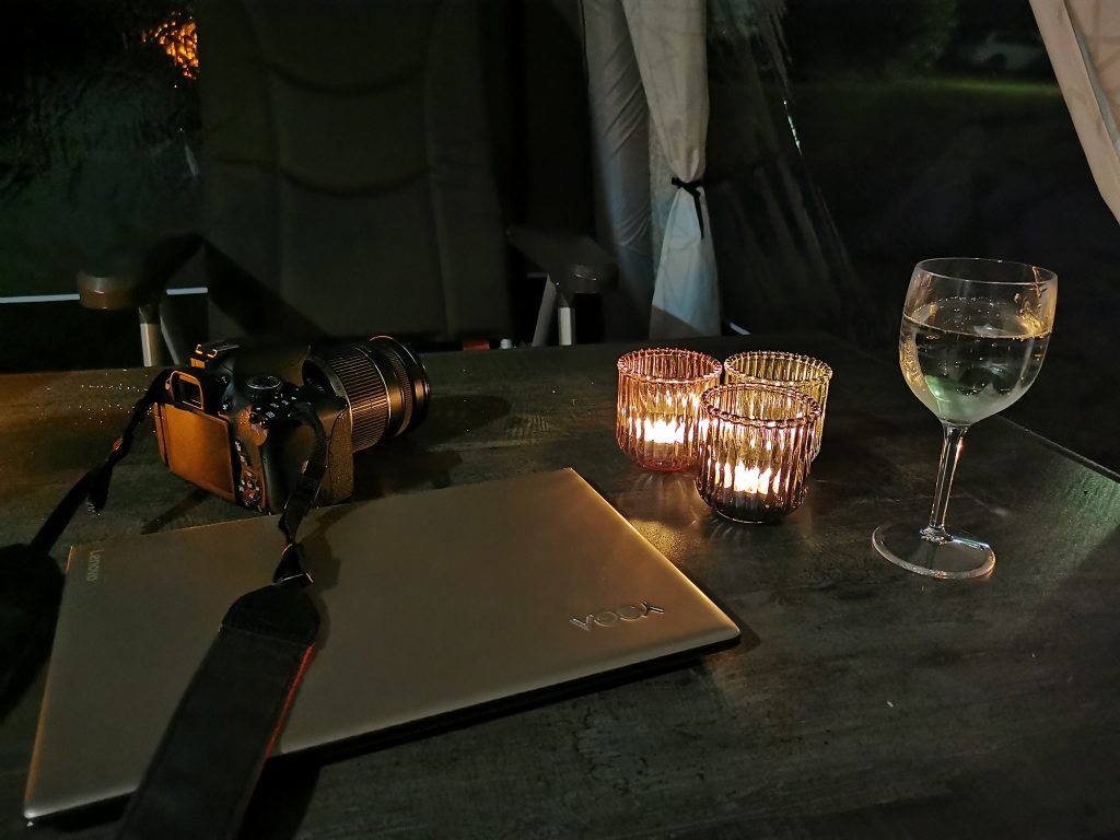 Vi satt i vårt tält och åt frukost, vi försökte vädra på dagen när det blev som ett växthus och vi gjorde allt för att njuta i det på kvällen med ljus och myspys. De där dagarna då det regnade var det ovärderligt att ha både tak och väggar runt sig.